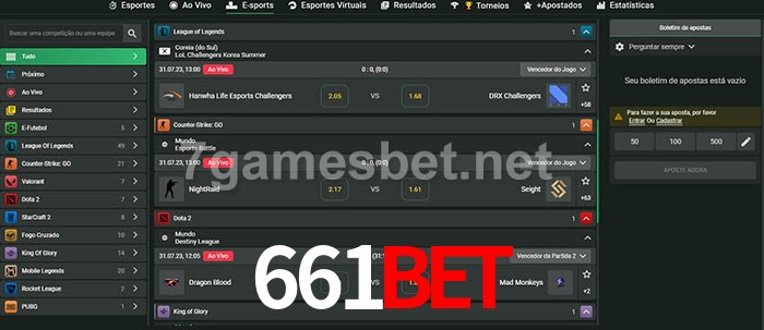 O 661Bet oferece uma grande seleção de opções de apostas em e-sports com probabilidades competitivas